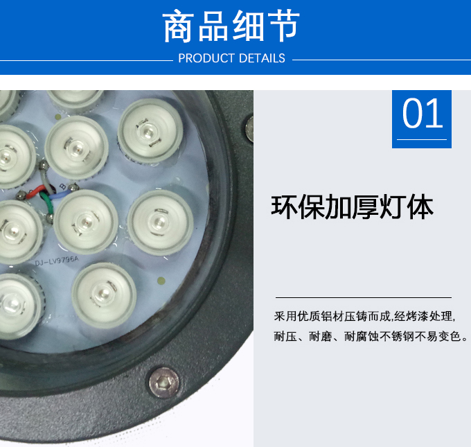 1、釆用鋁材壓鑄而成,經烤漆處理,耐壓、耐磨、耐腐蝕不銹鋼不易變色
